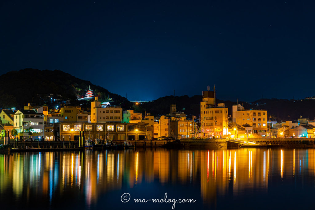 つづいて、尾道の対岸にある向島からの尾道の夜景です。
